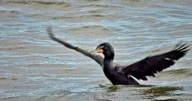 A few days later I saw it again and was able to get a few seconds of rough video, below. This is the first one of the species I personally have seen here on the North Basin. The bird sources say that they’re the most common of the grebe clan, but locally the Western and Clark’s Grebes show up rather often, and I see a Horned Grebe from time to time, but the Pied-billed is distinctly unusual.