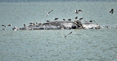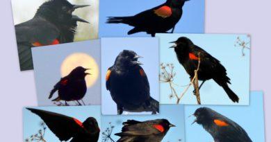 Park visitor and contributing photographer Evie Williams captured these beautiful images of a Mallard mom and her trail of chicks on May 11. Although the Mom kept an eye on the photographer, she showed no fear and did not change her course. Mallards generally have adapted so smoothly to human settlement that their numbers have been increasing, in contrast to many other bird species. Evie’s photos nicely demonstrate three features of Mallard chicks. Note that they are all the same size, more or less. The mom only lays an egg every other day, so that it took just short of three weeks to lay the eggs that produced these ten chicks. But Mom starts brooding the chicks (sitting on the eggs) only after she has laid the last egg, or close to it. As a result, they all hatch about the same time and come out the same size. By comparison, the Barn Owl mom, for example, starts brooding an egg as soon as she lays it, with the result that her chicks come out sized like organ pipes, with the oldest quite a big bigger than the youngest; see “Barn Babies” Oct 16 2020. The other quality that Evie’s photos demonstrate is the chicks’ ability to see and hike and swim from the moment they hatch. In scientific terms, they are precocial. The third point is perhaps obvious: the chicks are imprinted on their Mom, and follow her around wherever she goes. She will defend them fiercely, but there are many predators that target little chicks. In about two months the survivors will be able to fly.