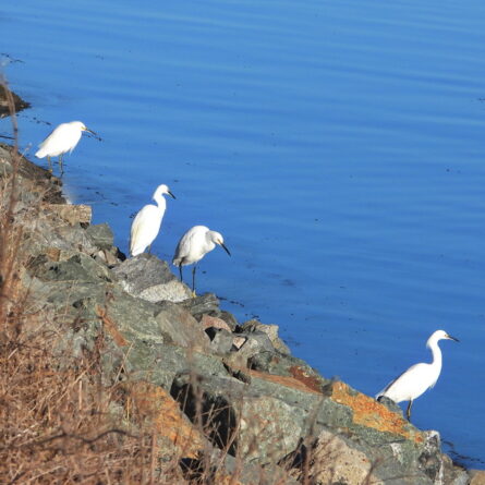 The Snowy Egrets were back this week, six of them, four hanging together and the others roaming individually. These pictures came from the east side of the park on Saturday morning Oct 26.