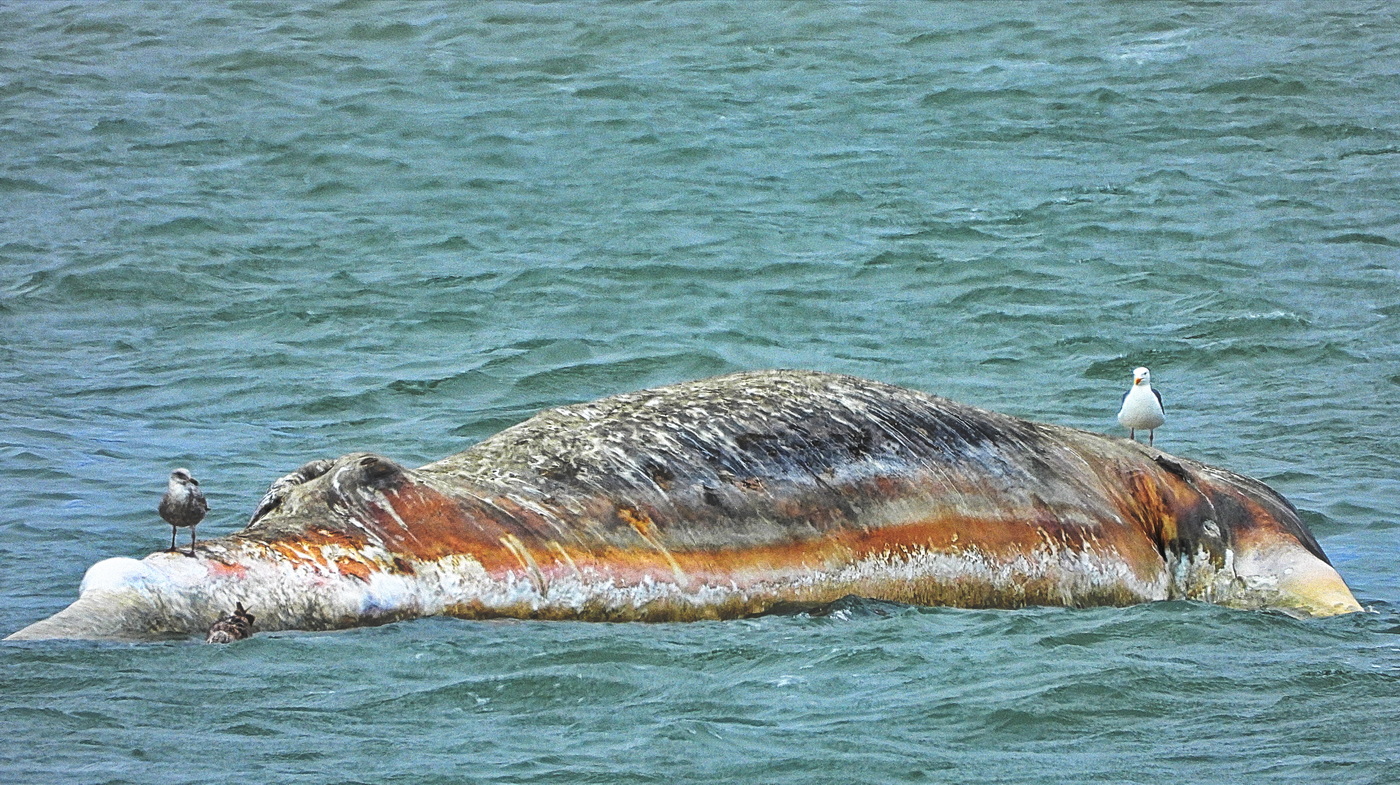 No one at the meeting, including Parks staff and commissioners, had any information about plans for the dead Gray Whale that has been anchored in the North Basin for the past two weeks. As one park visitor told me, the plan seems to be R.I.P. — Rot in Place. The carcass looks somewhat swollen from internal gases of decomposition. The gases sometimes cause whale carcasses to explode. Meanwhile the only scavengers are gulls, which may have found a weakness in the whale’s thick hide in the partially submerged tail portion. The carcass is becoming a point of interest for park visitors from all over.