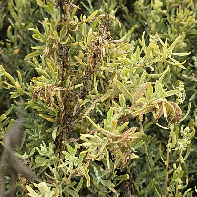 On the water side of the little land island west of the Native Plant Area, between the paved path and the shoreline dirt trail, part of the the slope is dense with a plant that somehow got overlooked in our previous botanical surveys.