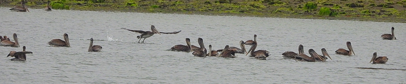 A small remnant of the hundreds of Brown Pelicans on the North Basin early in the morning Aug 22