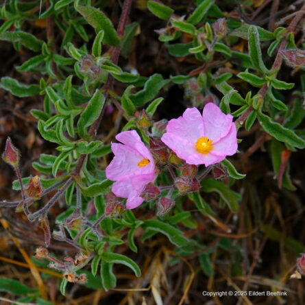 On the botanical side, we have three different California native buckwheats in flower: the Santa Cruz Island Buckwheat, the Coast Buckwheat, and the just plain California Buckwheat. Also blooming is the showy Common Madia. All were planted by Chavez Park Conservancy volunteers as part of the Native Pollinator Garden over the past three years. Also blooming now is a lovely Rock Rose growing on the North side where others planted it years earlier. It’s a Mediterranean import. All over Berkeley, the Naked Ladies are blooming now. Someone years ago planted a handful of them in the Native Plant Area. They don’t belong there (they’re native to South Africa) but we gave them a pass.