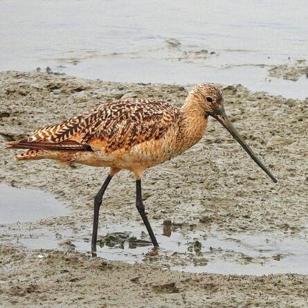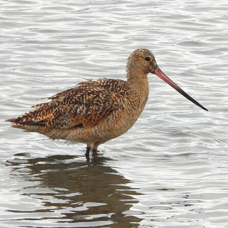 Not usually seen this time of year was a lone Marbled Godwit. This bird was either an unusually early migrant, or a timely migrant several hundred miles west of its main flock. I photographed this individual on Aug 12 and again on Aug 22, so it wasn’t just passing through. Judging by the great length of its beak, this is probably a female.
