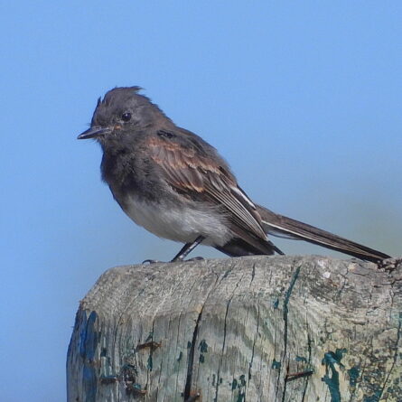 Among the songbirds, I and the Merlin app heard a lot of House Finches and several Song Sparrows and at least one Savannah Sparrow. Eildert captured a beautiful Anna’s Humming bird with part of its gorget ablaze. My camera saw only the finches, plus a Black Phoebe, a White-crowned Sparrow, and what’s probably a Brown-headed Cowbird female picking bugs in the Fennel.