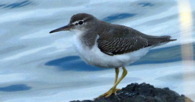 Up in the northwest corner of the park, the Red-winged Blackbirds have set up their party room and nursery. But they’re not the only ones reproducing the species in that area. Sharing the fennel forest with the blackbirds are some of the House Finches. I saw males chasing females with obvious intent there, and others advertising their sterling qualities from the tops of fennel stalks, just the way that the blackbird males do. If the blackbirds felt crowded by the finches’ presence, they didn’t show it. The two species seemed to completely ignore one another. And why not? There’s plenty of fennel to go around.